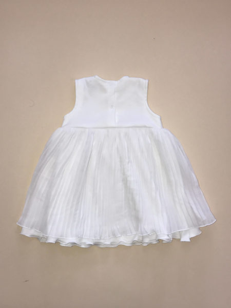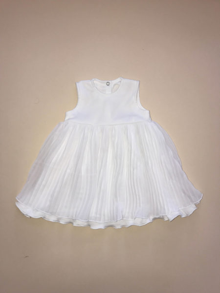 Egyszerű, letisztult kis alapruha pamut anyagból, mell alatt elvágott, ujjatlan. Szoknya rész pliszírozott muszlin anyagból készült. Hátul patentos, kerek nyakú. Nagyon kellemes, jól kihasználható, könnyen kezelhető ruhácska. Hétköznapokon és ünnepeken is hordható. Anyagösszetétel: alapruha: 100% pamut interlock, muszlin: 100% polyeszter.