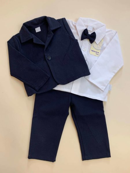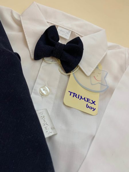Nagyon vékony mikro bordás kord bársony kisfiú alkalmi ruha. Elöl gombos zakó, szűkített szárú gumis derekú nadrág,melyben a gumi állítható, csokor nyakkendő, mely szatén szalaggal, tépőzárral rögzíthető. Mindhárom mikro bordás kord bárdony anyagból készül. Elöl gombos hosszú ujjú ing, mandzsettával. Jól kihasználható, variálható garnitúra keresztelőre, különleges alkalmakra. Anyagösszetétel: ing anyaga: 100 % pamut, zakó, nadrág anyaga: 95% pamut, 5% elasztán.